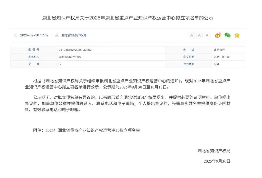 为贯彻落实国家《专利转化运用专项行动方案(2023—2025年)》,助力湖北培育新质生产力、建设现代化产业体系,湖北省知识产权局启动省级重点产业知识产权运营中心建设工作。经过申报、评审与公示程序,湖北长江科创服务集团有限公司成功获批,将作为牵头单位,负责建设运营“湖北省现代医学与创新药械产业知识产权运营中心”。