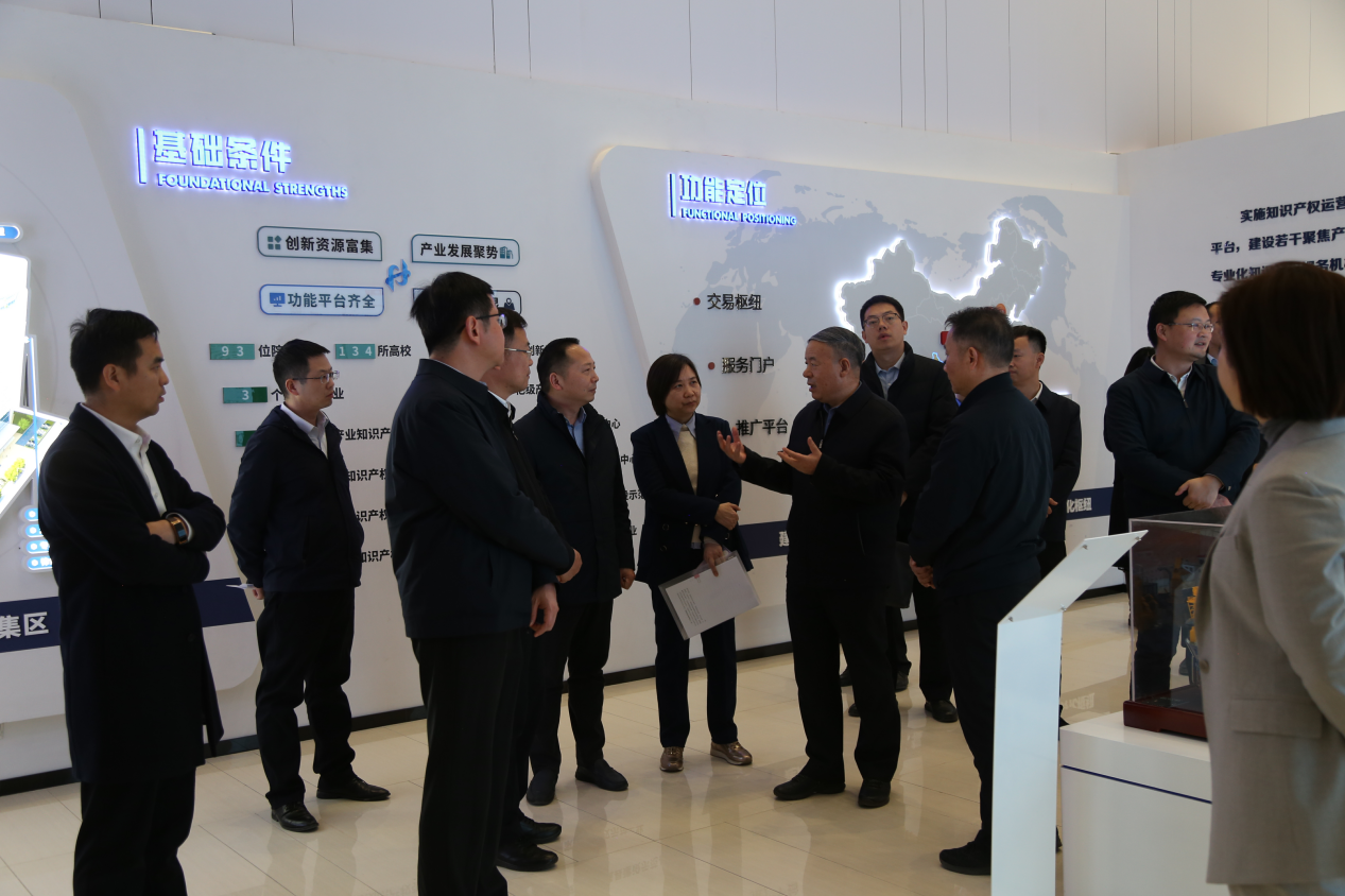 此次调研旨在深入了解湖北在知识产权运营服务体系建设中的创新突破,实地考察这一全国首创平台在打通“科技强”到“产业强”通道中的示范效应。调研组一行实地参观了由长江科服依托AI PARK打造的知识产权服务集聚区。在转化中心展厅,调研组一行对中心依托大数据驾驶舱实现精准决策,以及构建“1+N”区域联动机制、联合中部六省建立合作网络的做法给予了充分肯定。调研组驻足于湖北顶尖科研实力的展品前,详细询问了这些高价值专利从实验室走向生产线的具体路径,对中心在赋能传统产业升级、支撑支柱产业发展及布局未来赛道方面取得的实效表示高度关注。