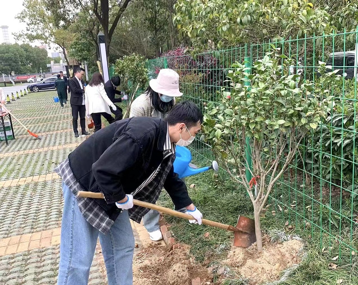 活动现场,党员代表们分工协作,干劲十足。挥锹铲土、踏土夯苗、拎桶浇水,一片片盈盈新绿在春风中摇曳。自美好环境与幸福生活共同缔造活动开展以来,光谷企业天地园区各级党支部深入践行活动要求,以党建引领红色园区建设为总体目标,提升党员志愿服务意识,引领党员带头为园区献力量、为群众做表率。以贯彻领会五共理念为活动宗旨,凝聚园区企业向心力,为园区职工打造绿色健康、和谐温暖的工作环境。