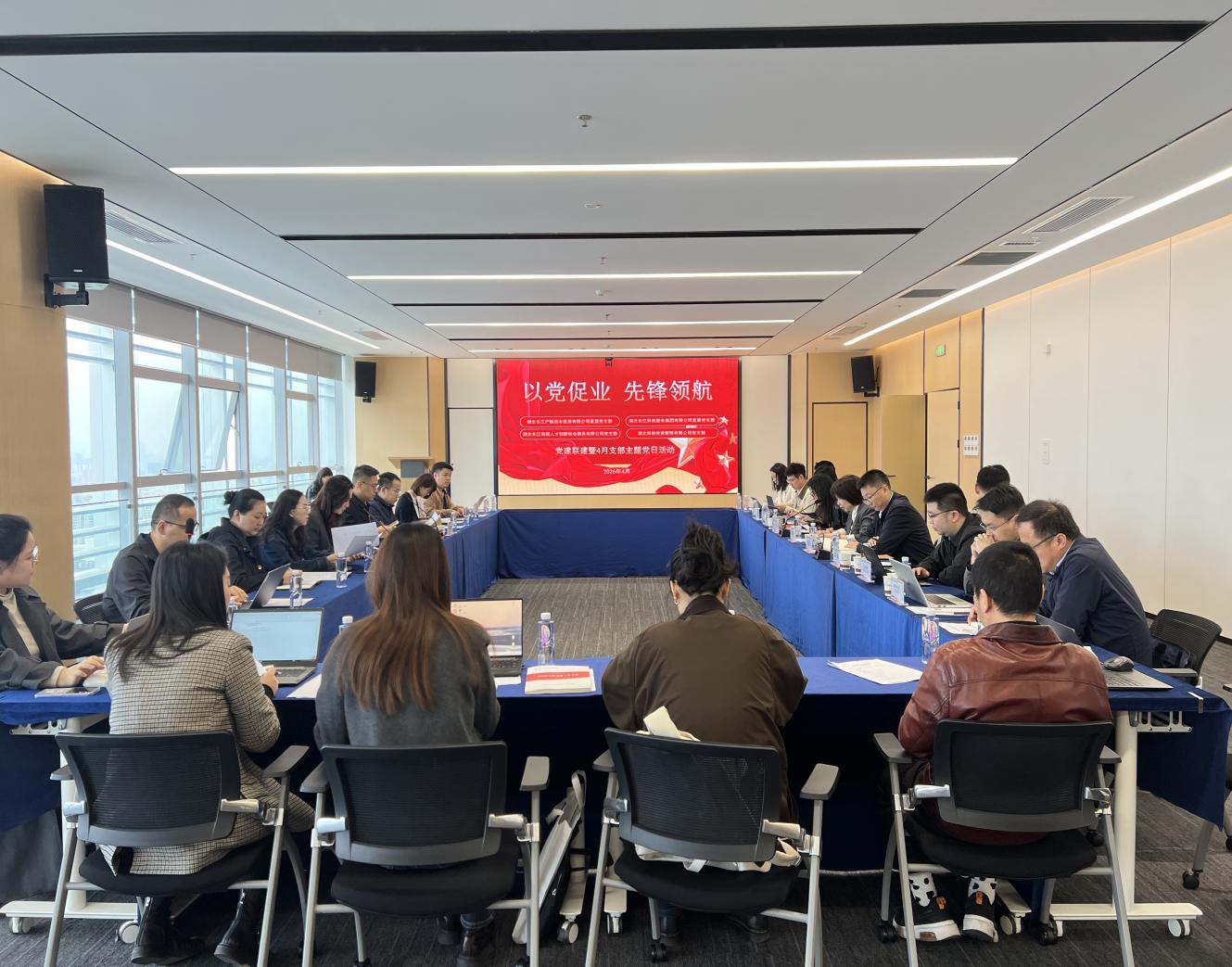 4月22日,长江科服联合长江产融资本、高端人才公司、湖北科创在长江人才大厦举办了“以党促业,先锋领航”党建联建暨4月支部主题党日活动。长江科服党委书记、董事长陈汉梅主持活动,长江产融资本党支部副书记、总经理徐琪、高端人才公司党支部书记、常务副总经理丁珍,湖北科创党支部书记、执行董事、总经理夏海东出席活动。