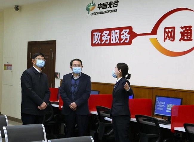 涂山峰、何大春一行考察了光谷企业天地项目管理运营情况,先后参观走访了园区政务服务平台——光谷政务服务企业分中心,今日头条、动游科技等行业领军企业。