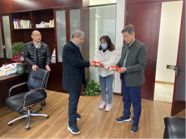 图:湖北粮油主要负责人为统战成员赠送书籍和慰问信