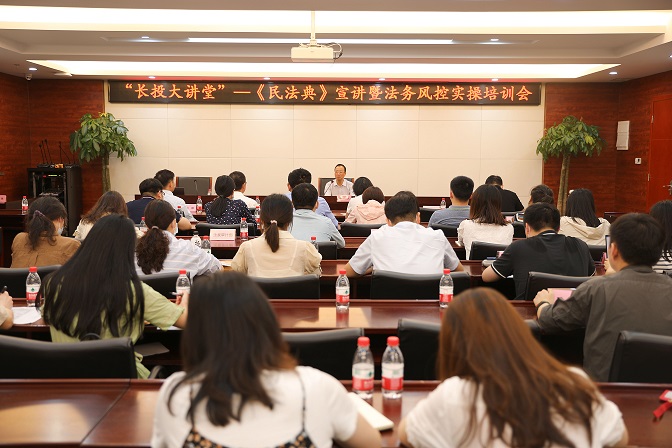 为进一步加强《民法典》普法宣传工作,提高企业法务、风控人员实务操作水平,6月7日,长投集团举办《民法典》宣讲暨法务风控实操培训会。集团公司党委委员、副总经理李纪平出席会议并讲话,北京大成(武汉)律师事务所高级合伙人、管委会主任罗长德应邀作专题培训。