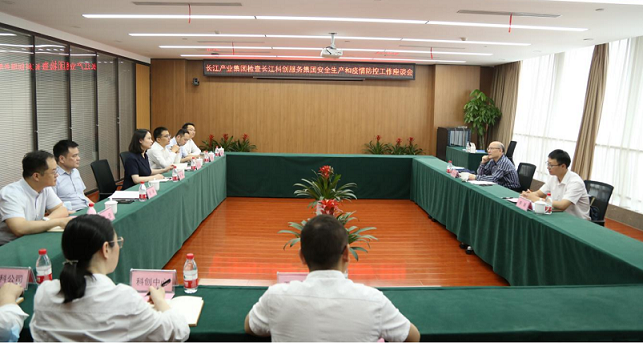 5月27日上午,长江产业集团副总经理陈立新一行到长江科服检查指导安全生产和疫情防控工作。长江科服党委书记、董事长易琳陪同调研。