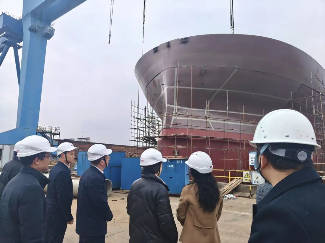 在江润造船厂,调研组深入船舶制造车间,详细了解企业在纯电智能集装箱船及客船游轮等领域的建造能力与智能化改造需求,探讨人工智能技术在船舶生产制造环节的应用前景。