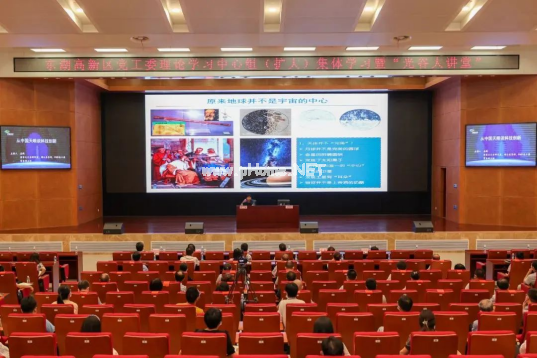 7月15日,东湖高新区党工委理论学习中心组(扩大)集体学习暨“光谷大讲堂”举行。国家天文台研究员、FAST(中国天眼)总工程师兼常务副主任姜鹏以《从中国天眼谈科技创新》为题作科普报告。