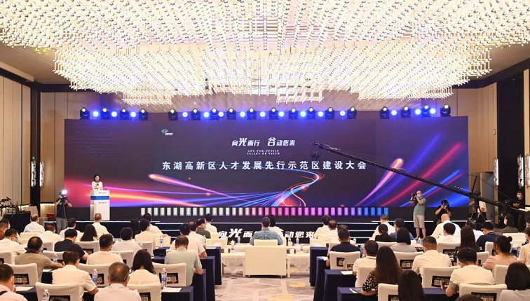 市委常委、东湖高新区党工委书记刘洁为光谷人才集团授牌,并宣布东湖高新区人才发展先行示范区启动建设。