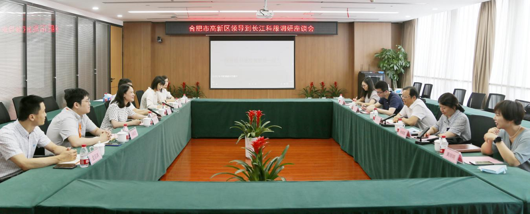 合肥高新区经济贸易局副局长吴昊、黄明明,企业服务处张丽;长江科服党委委员、副总经理张佳及相关部室负责人参与座谈。