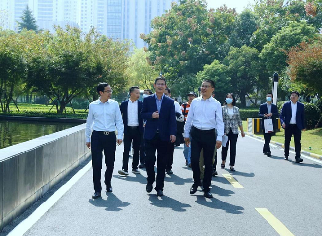 盛继亮一行实地考察了光谷企业天地项目建设情况,详细听取了园区建设背景、空间运营现状及产业升级规划的汇报。他指出作为市级科技创新园区,光谷企业天地在培育多元创新主体、营造良好创新环境、助力创新创业创富上发挥了示范带动作用,是省属科创服务平台支持地方产业发展和科技创新事业的生动例证,希望长江科服继续发挥管理运营优势,结合功能定位,系统规划园区闲置空间,形成主导功能清晰、特色鲜明的布局;他建议,长江科服要持续围绕汇聚人才、资金、产业、服务等资源要素,在合力打造创新涌动、创业蓬勃发展的热带雨林式生态,统筹做好科技创新与产业升级上持续发力,为武汉建设成具有全国影响力的科技创新中心提供有力支撑。