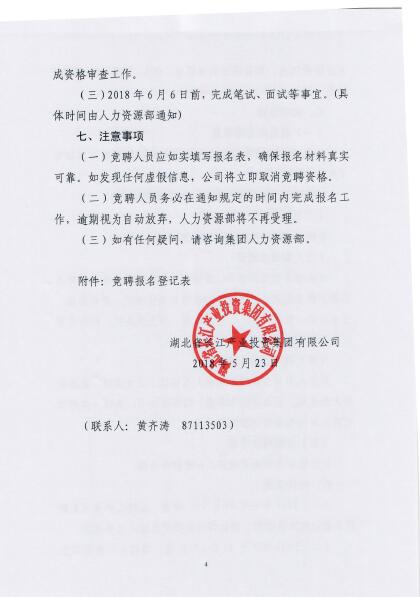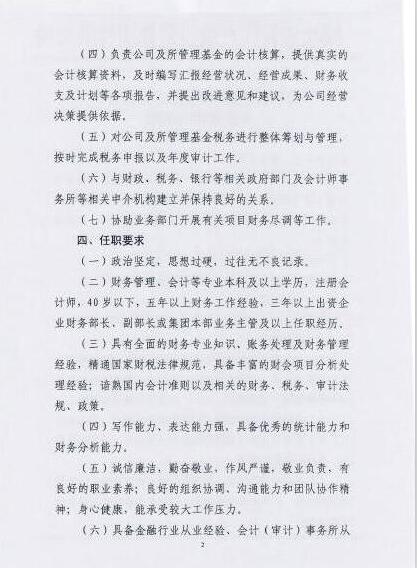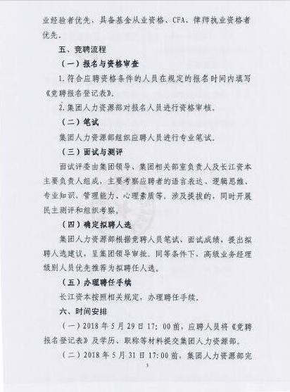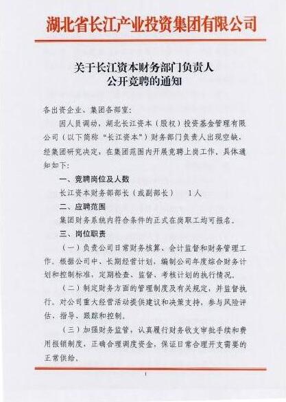 关于长江资本财务部门负责人公开竞聘的通知
